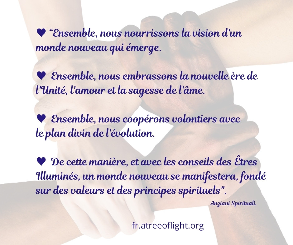 "Il y a des raisons de pleurer ce qui meurt, mais bien plus de raisons de célébrer ce qui est en train de naître. L'être humain divin se libère des chaînes de la matière et entre dans un âge de Lumière spirituelle." 037a_F-Fr