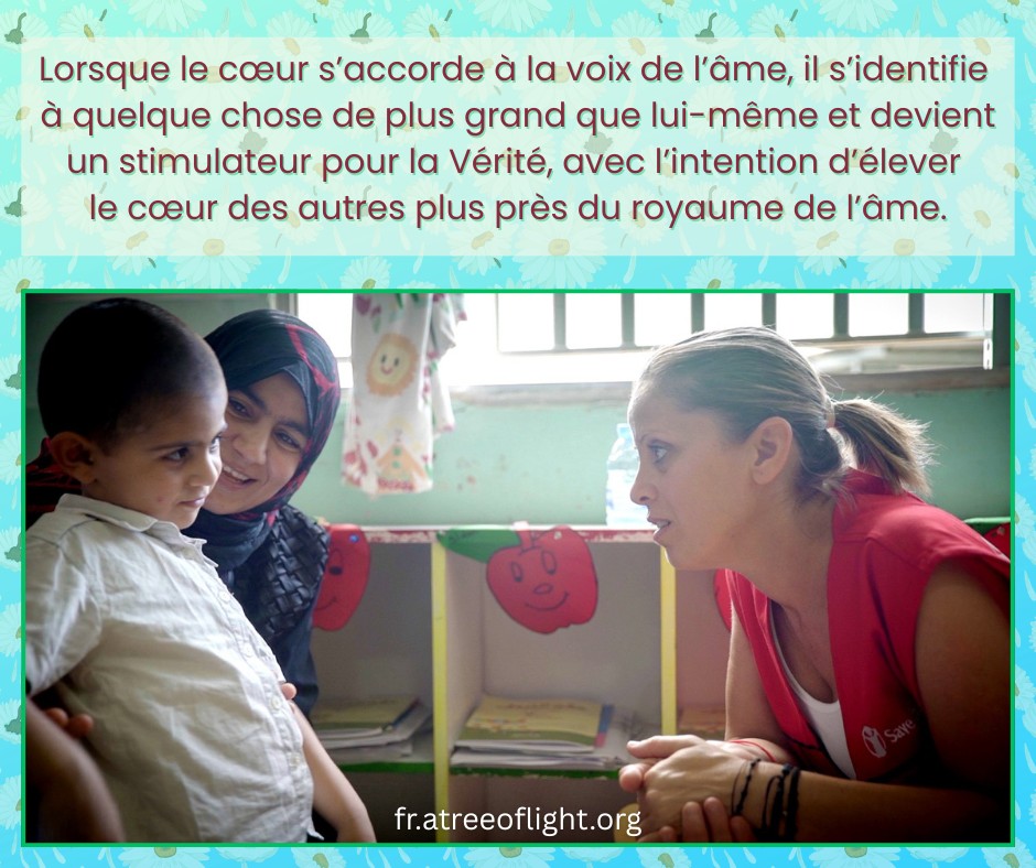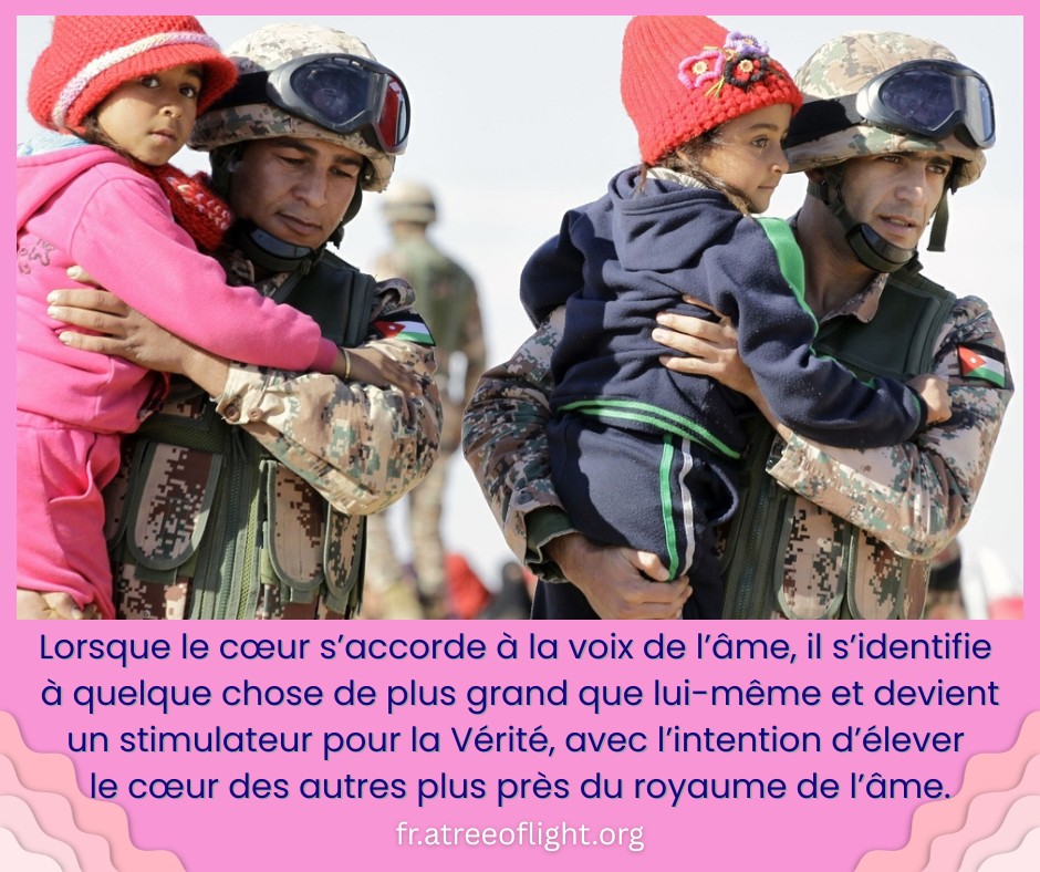 Lorsque le cœur s’accorde à la voix de l’âme, il s’identifie à quelque chose de plus grand que lui-même et devient un stimulateur pour la Vérité, avec l’intention d’élever le cœur des autres plus près du royaume de l’âme. 447a-F-Fr