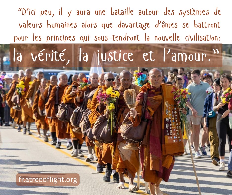 “Grâce à l’influence croissante de l’âme humaine, un système de justice et d’équité émergera plus tôt que nous ne le pensons.” 219-F-Alt-Fr