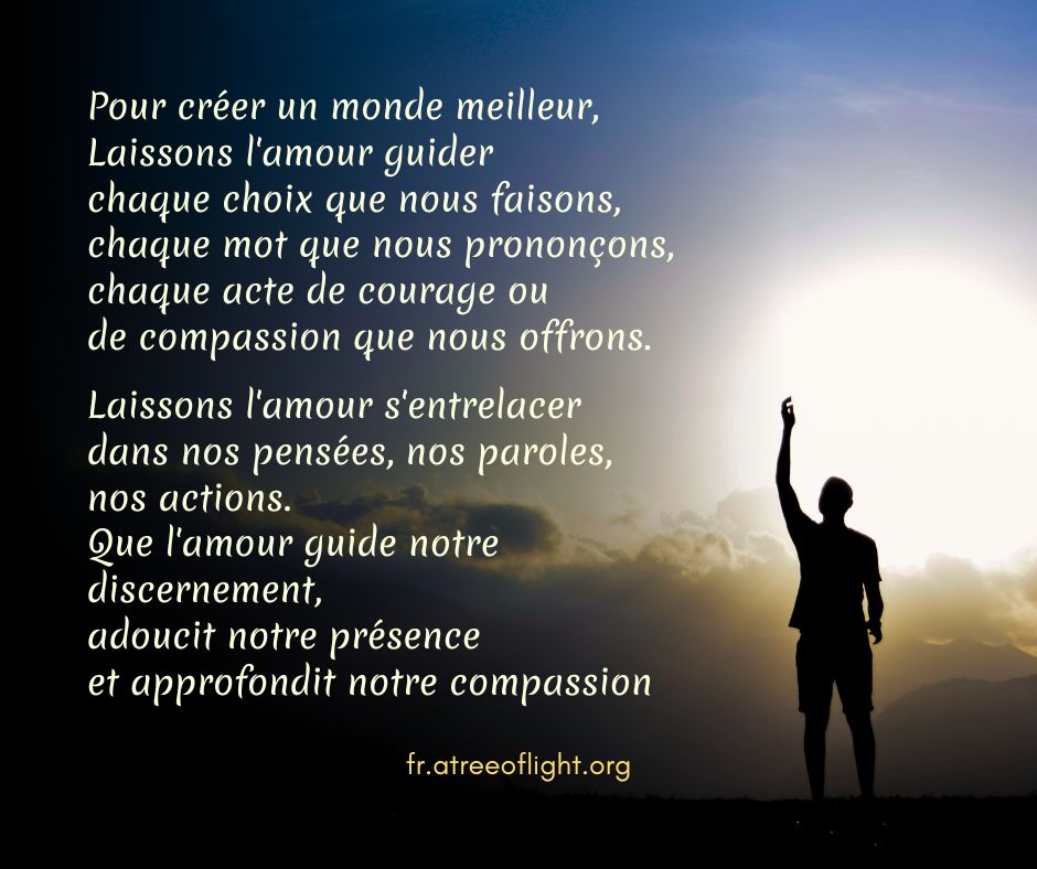 L’esprit d’Amour est actif dans le monde, partout où des personnes courageuses créent une contrepartie aux ténèbres de l’agression, de la cupidité et de l’égoïsme. AAS-I-027-F-Fr
